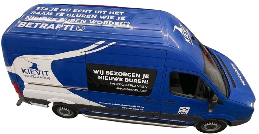 Zo hebben wij een passende auto belettering gemaakt voor Peters Motions en Kieviet Makelaardij.