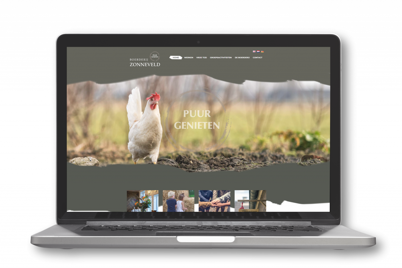 Dirk ontwikkelde een frisse huisstijl en maakte een schitterende website waar de sfeer van Boerderij Zonneveld perfect naar voren komt.