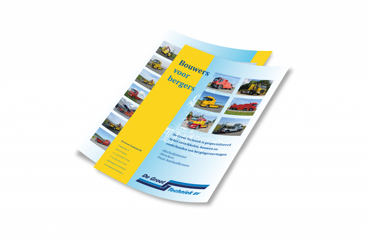 Voor De Groot Techniek hebben we de huisstijl strak getrokken, maakten we een mooie brochure met bijbehorende presentatiemap en hielpen we ze met social advertising voor het vinden van personeel.