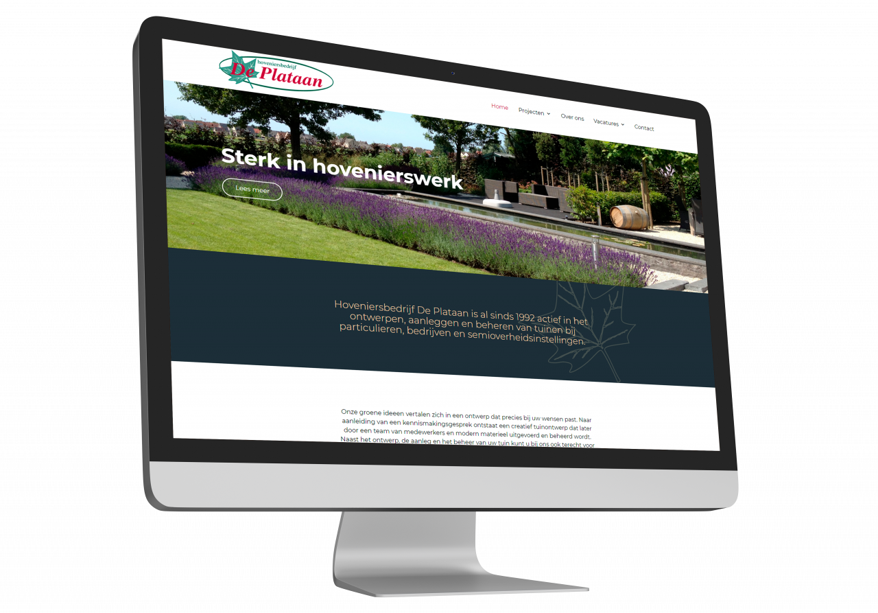 Met zo'n offline presence moet de uitstraling online natuurlijk ook van een gelikt niveau zijn. Dirk ontwikkelde een strakke website waar de doelgroep verliefd kan worden op het prachtige werk van De Plataan, maar ook in staat is om zelf contact op te nemen met deze toppers.