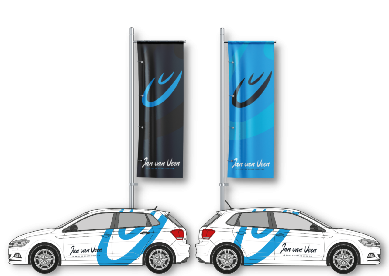 Natuurlijk is ook de signing van leenauto's is aangepakt zodat ook deze een prachtig visitekaartje voor Jan van Veen zijn geworden!