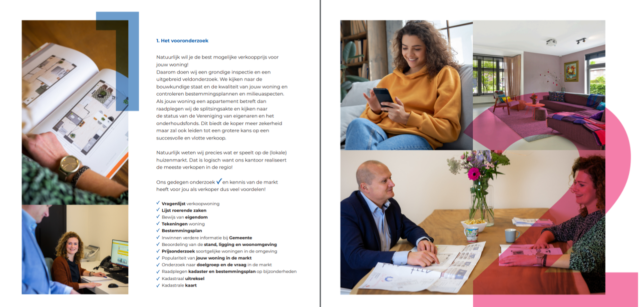 De nieuwe brochure is een echte eye-catcher om achter te laten bij potentiële verkopers. De foto's uit de shoot zorgen voor een realistisch beeld van het makelaarskantoor en de dagelijkse gang van zaken.